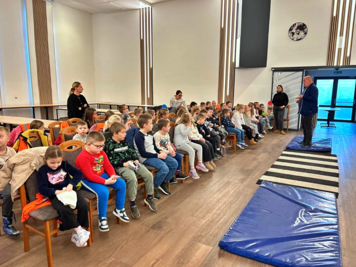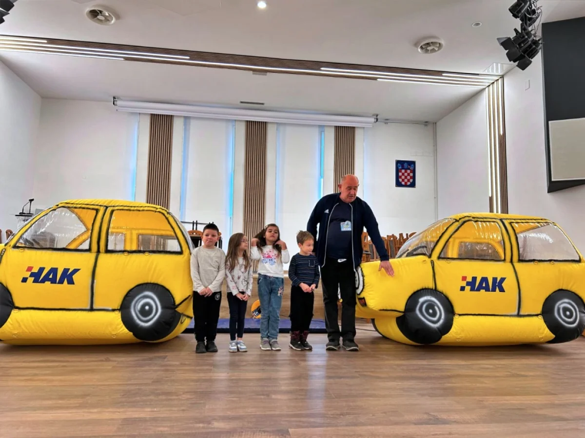 Kroz zanimljivu i zabavnu prezentaciju naučili su kako se sigurno prelazi cesta, gdje se djeca voze u autu, što znače prometni znakovi, zašto je važno nositi reflektirajuće prsluke i uvijek biti pažljiv pješak.