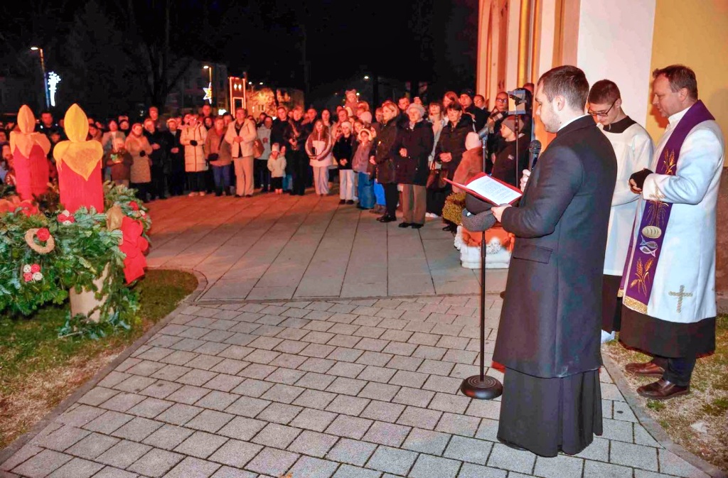 Vlč. Kosec posebno je pozdravio gradonačelnika Milorada Batinića sa suradnicima iz Grada, na čiju je inicijativu prvi put postavljen veliki adventski vijenac ispred crkve, a za koji je župnik ocijenio da je najljepši na širem području.